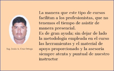 Los cursos personalizados on line se realizan hasta para un solo participante adecuando los ejemplos al tipo de obra o conceptos que maneje de acuerdo a la especialidad o dependencia requerida. La interacción facilitador-participante es uno a uno usando todo el tiempo para aclarar dudas y realizar todos los ejercicios que requiera, hasta la comprensión total del tema. Estos se realizan en días y horarios a elegir en cuatro sesiones de dos horas cada una para consolidar el aprendizaje.